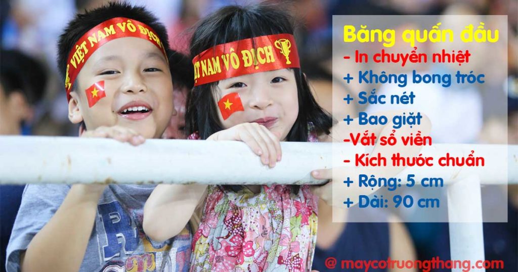 Băng rôn quấn đầu được sử dụng phổ biến trong các sự kiện thể thao, cổ vũ, cuộc thi hoa hậu, các gameshow, các cuộc thi phong trào khác,…Cờ Trường Thắng sử dụng chất liệu vải phi bóng ( loại vải chuyên dụng để may cờ ) để làm băng rôn quấn đầu. Phương pháp in chuyển nhiệt hiện đại, giúp mực thấm sâu trong vải, vì thế màu sắc và chi tiết trên chiếc băng quấn đầu được sắc nét và đẹp hơn.