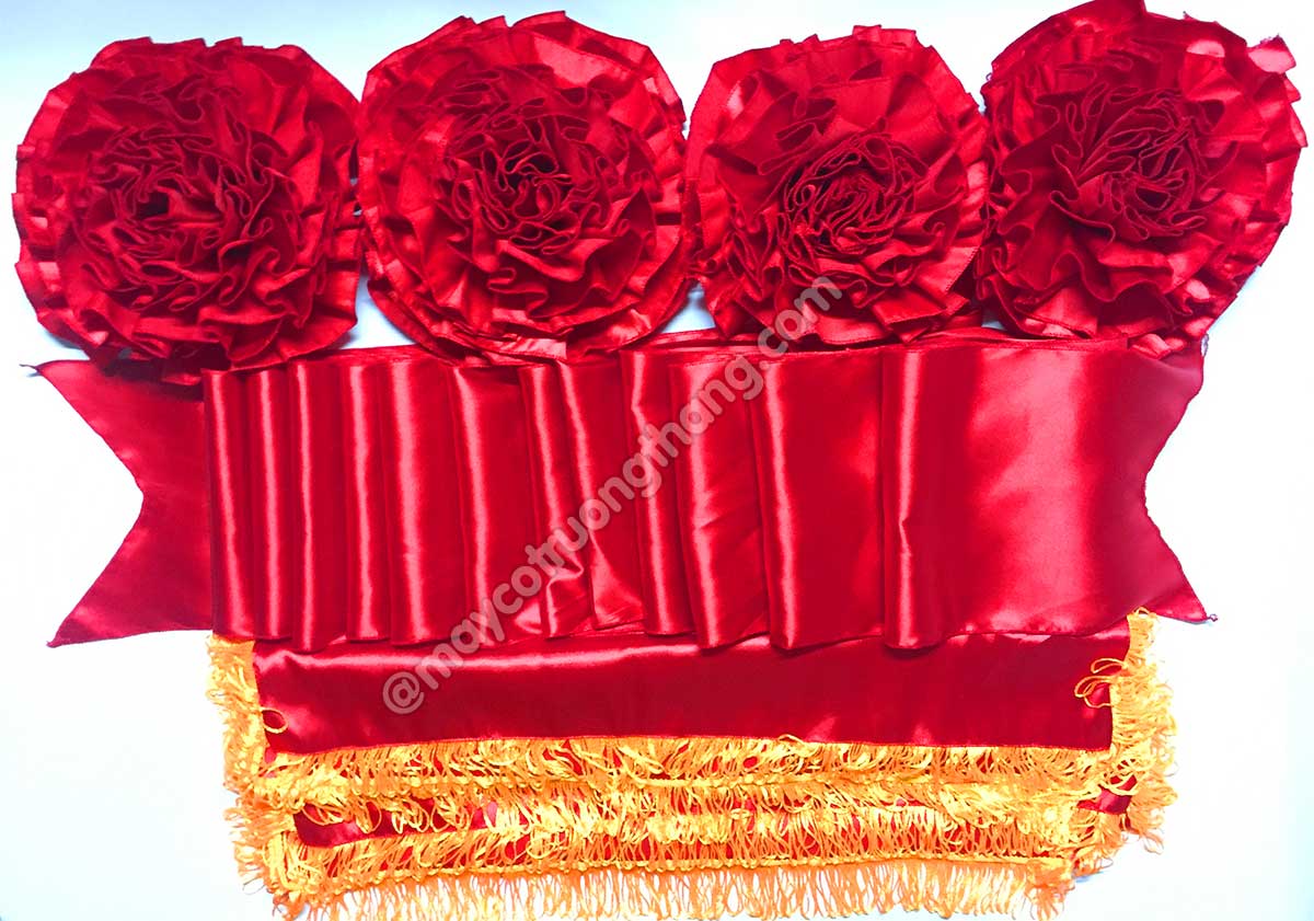 - Bông khánh thành: chất liệu vải ny lông, vắt sổ biên và kết thành hoa.